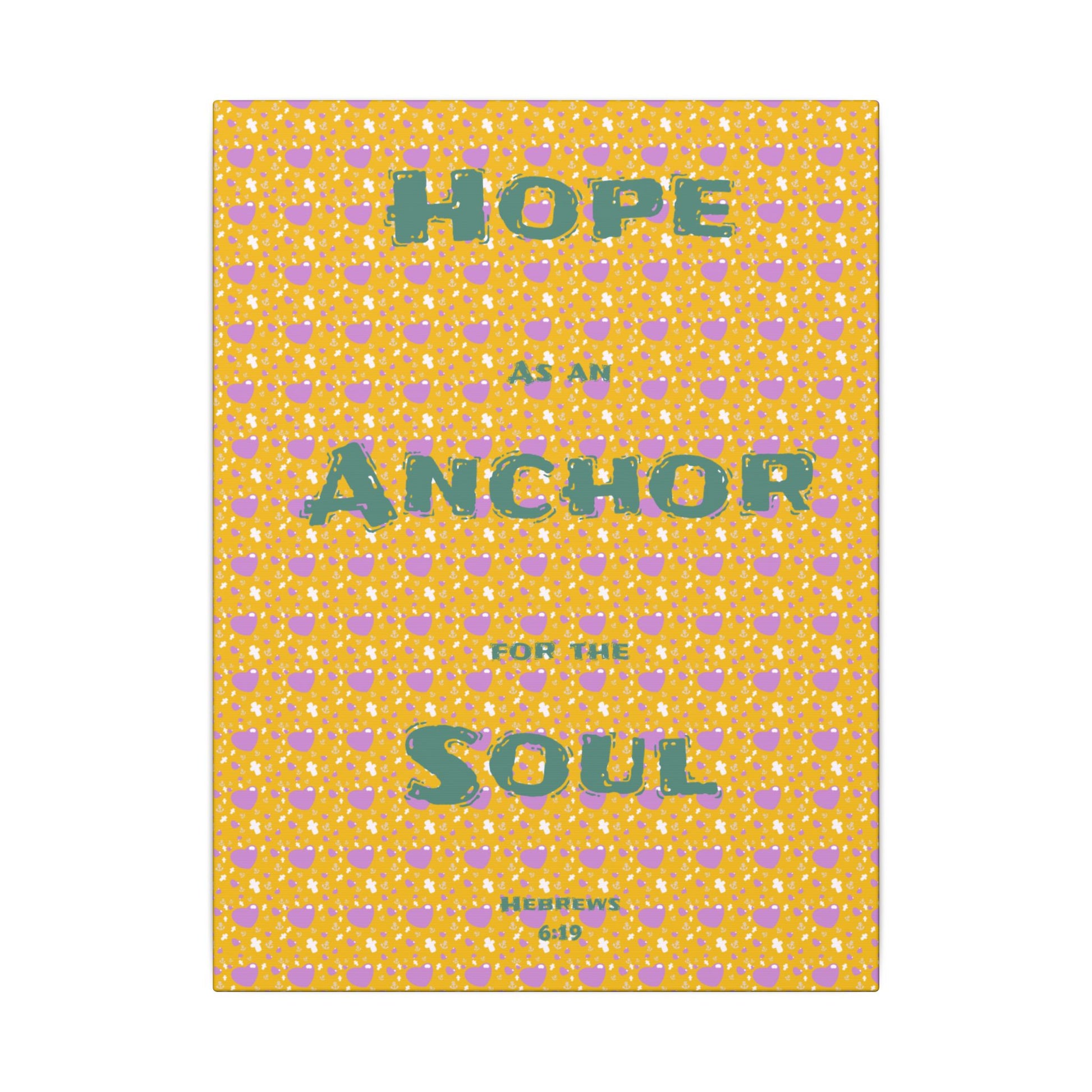 A beautiful canvas print featuring the design of 'Hope as anchor of soul'. This unique piece brings a sense of positivity and inspiration to any room it's displayed in. Perfect for those who appreciate meaningful art in their home decor. Ideal for gifting during occasions like birthdays, housewarmings, and graduations.